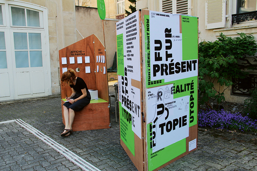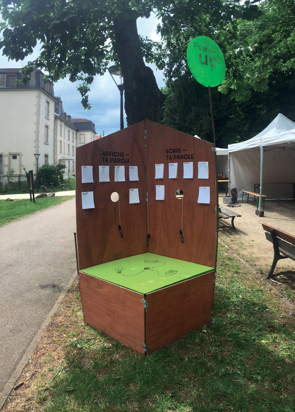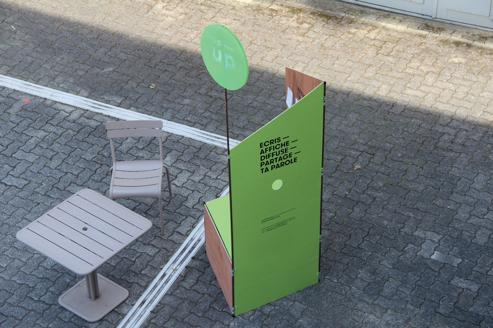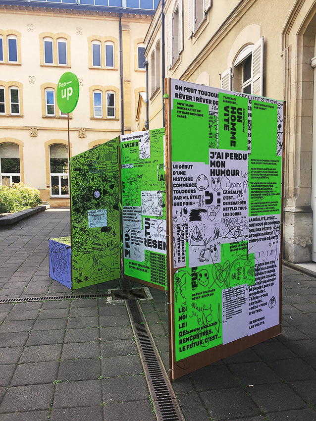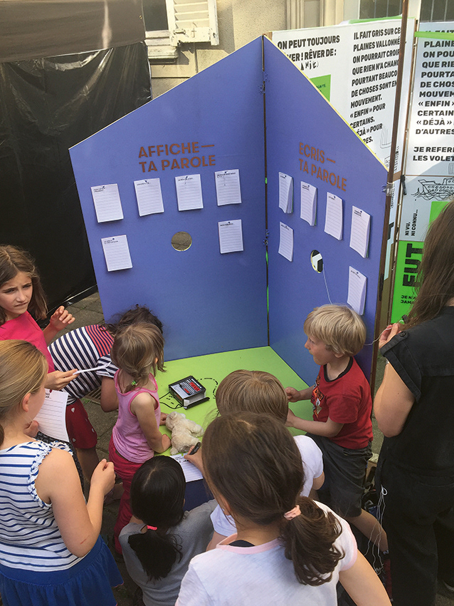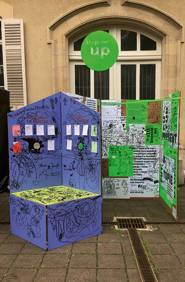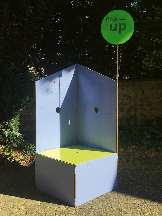 A mobile, foldable wall as an invitation to talk and express yourself about your neighborhood.